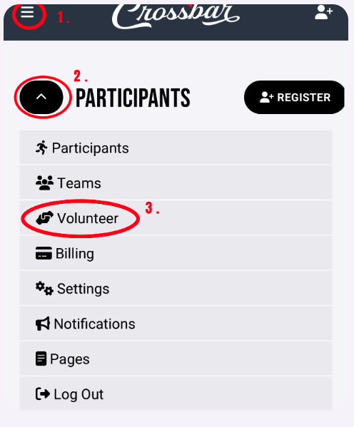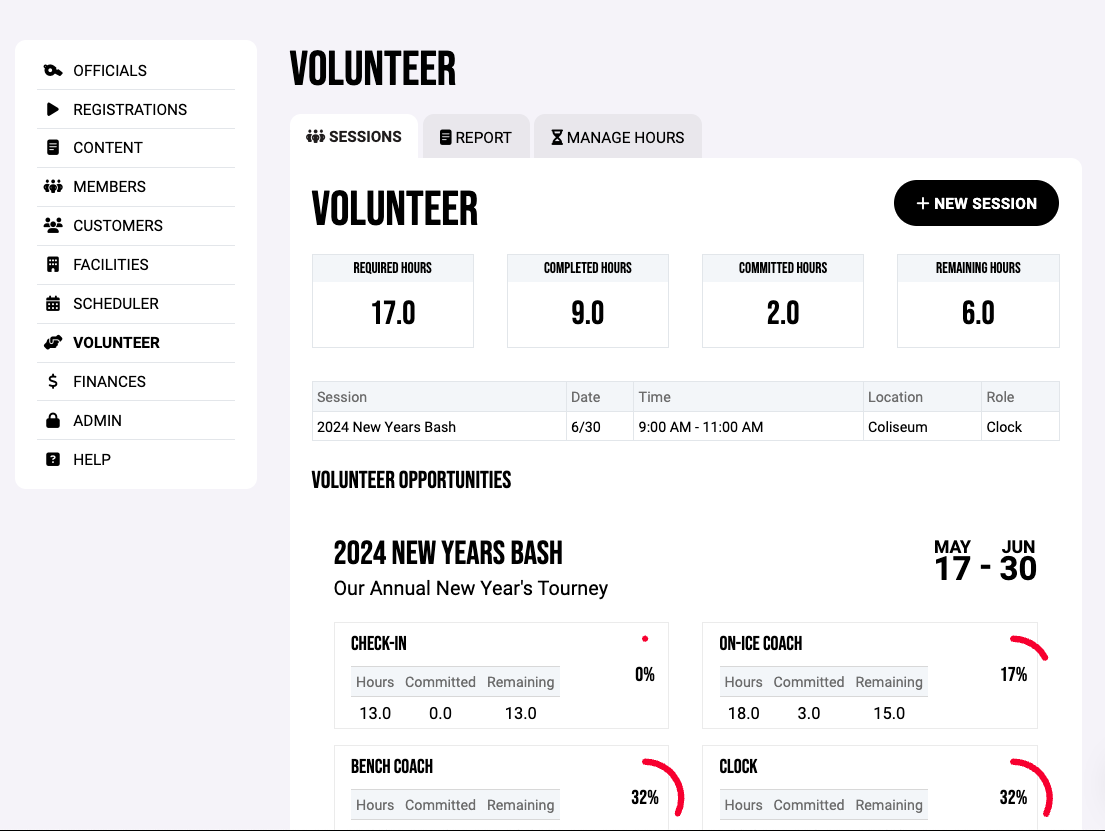 You can always find your Sessions and most up to date Required, Completed, Committed, and Remaining Hours under the Volunteer tab in your Crossbar Account
