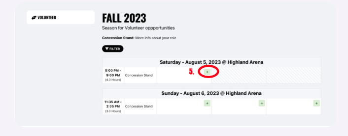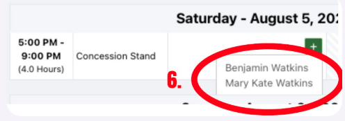 e. For the shift you wish to choose click on the GREEN + button